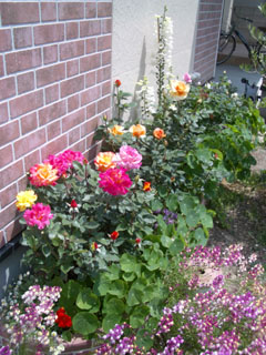 夏のさえぎるもののない南向き花壇がちと心配ですが、早くオリーブが茂って木陰を作ってくれればなぁ。まだ2mくらいだからなぁ。来年には3mくらいにはなってるかしら。