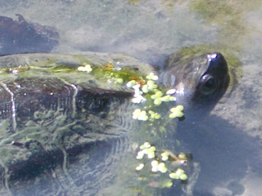 「何か水面に出てる?」と思ったら亀でしたか。水草(?)がお花みたいに見えて可愛いですね♪
