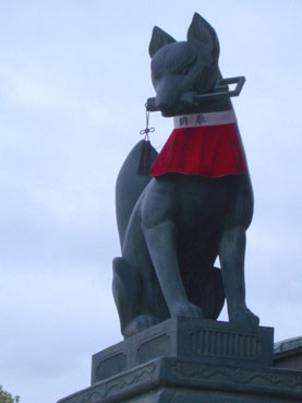こっちが「鍵」を咥えてるおキツネ様です。なんつーか十手っぽい?